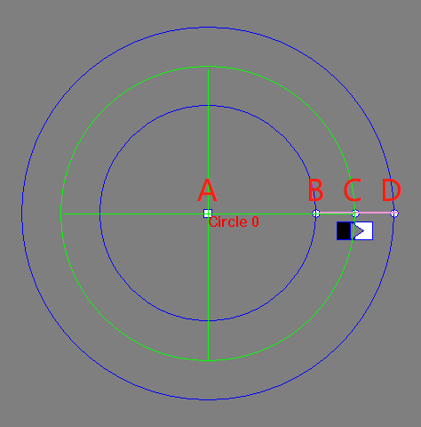控制点A:使用鼠标点选该控制点可拖动整个圆工具