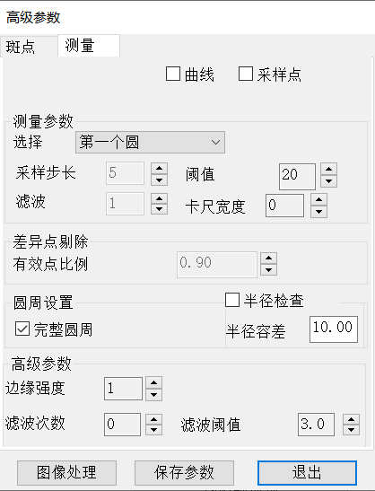 这两个参数是组合使用的,它们起到剔除差异点的作用,提高拟合圆的准确性。