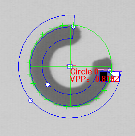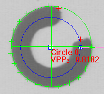 该参数表示参与拟合圆的有效点数量占总测量路径数量的百分比。由于边缘残缺或部分边缘点被剔除等情况,使得参与拟合圆的边缘点数目减少,但不能低于该参数值,否则测量失败。下图中,有效点比例VPP:0.8182