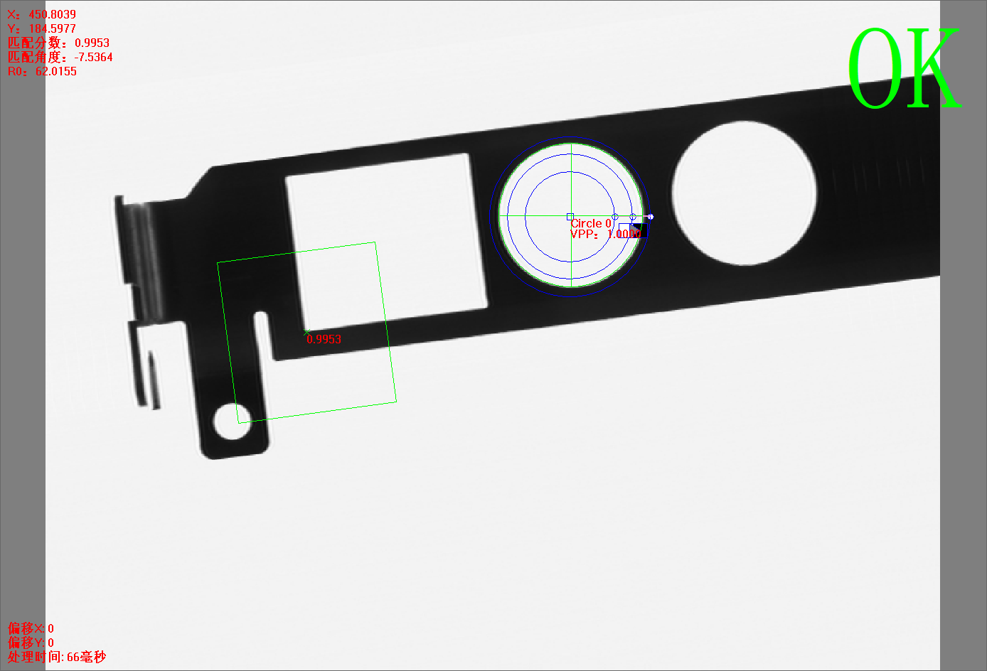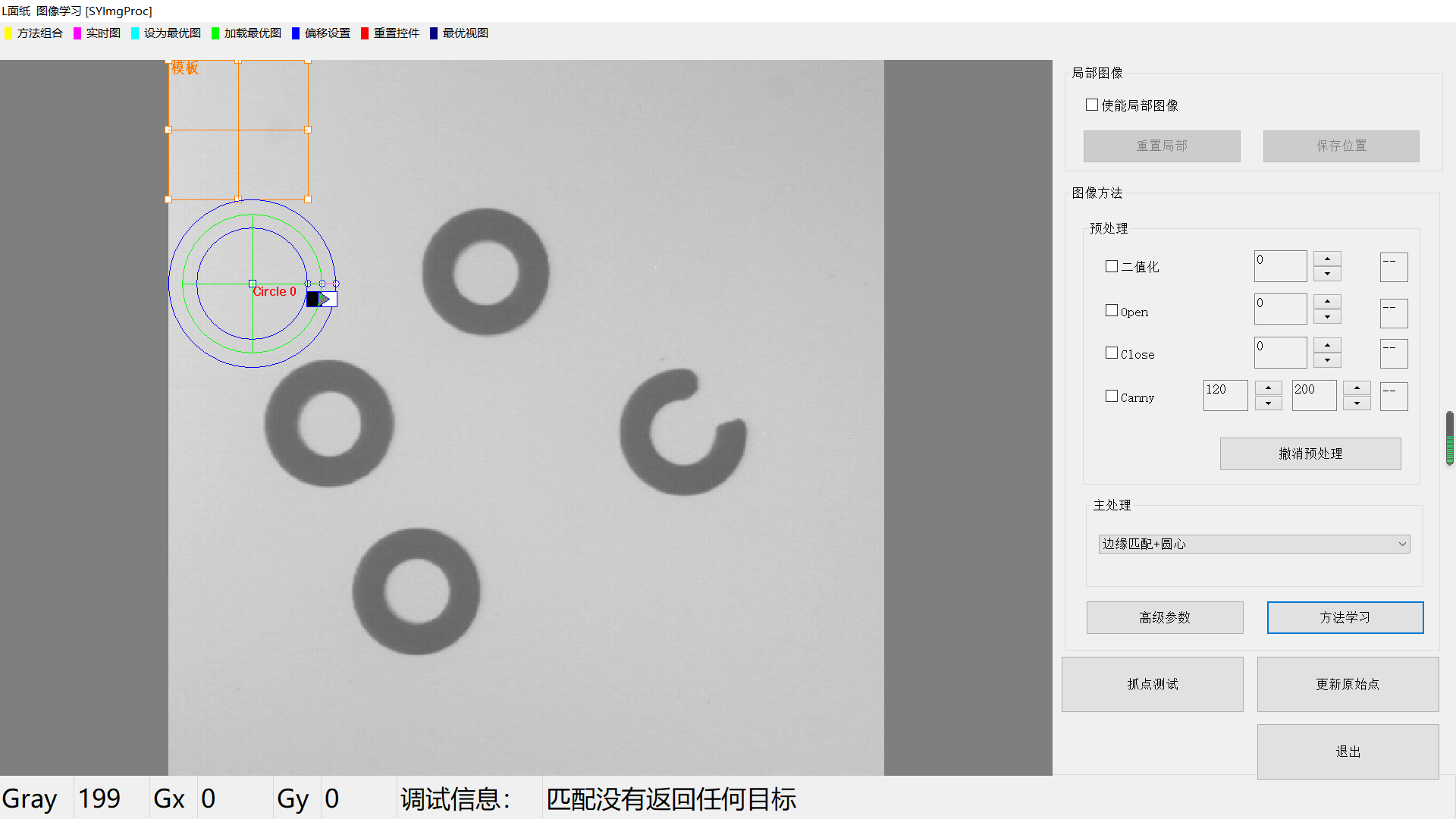 点击【方法学习】后,边缘匹配+圆心方法的所有信息将被保存,并自动进行图像处理,相关的信息将显示。