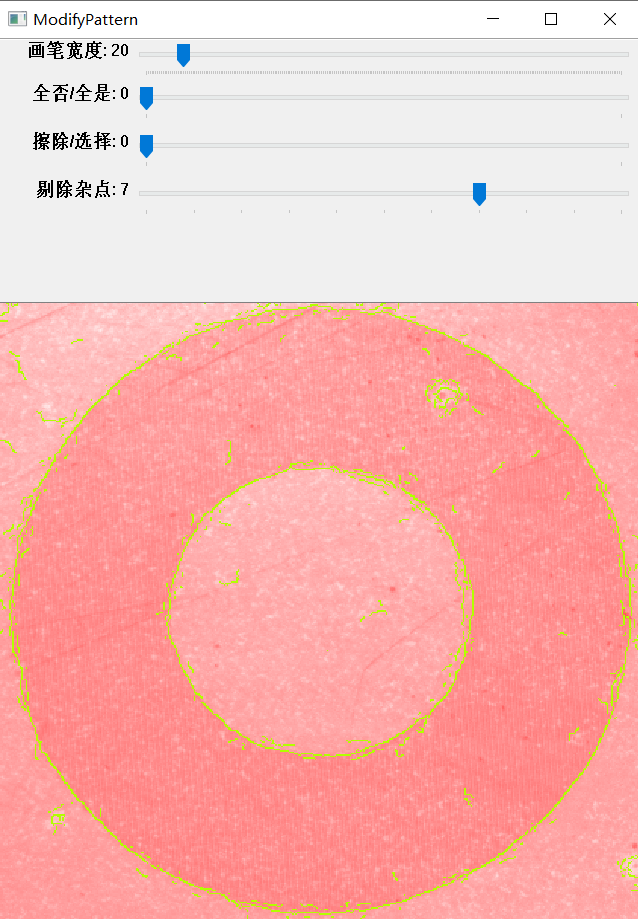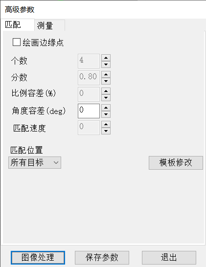 当图像的质量较差时,边缘模糊产生大量的杂点;从而增加了搜索的时间,同时影响了搜索的准确性。通过调整【剔除杂点】去除大部分的干扰点,优化了模板的轮廓信息。