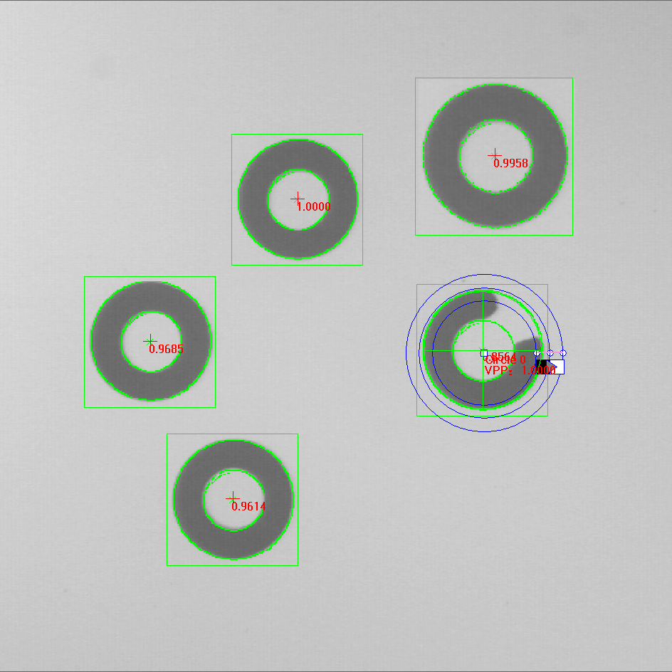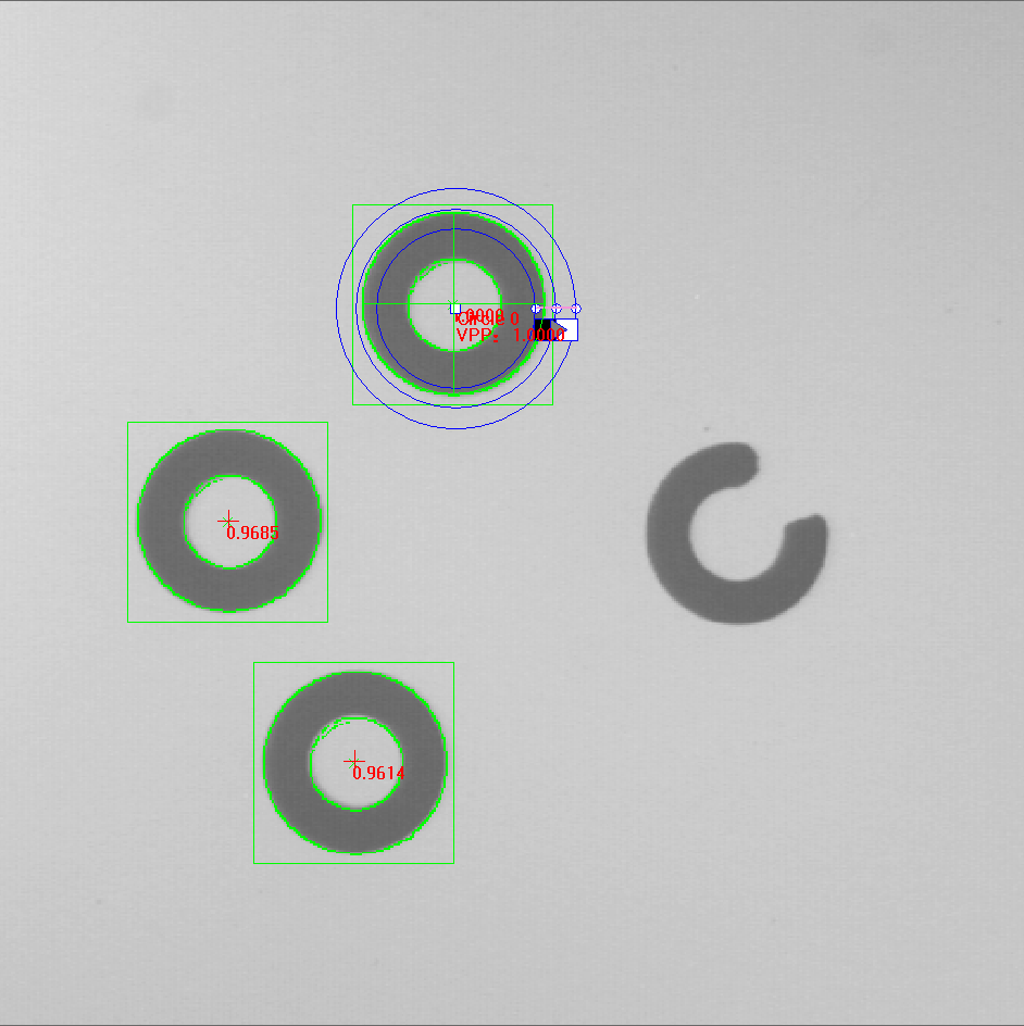 匹配作为粗定位使用,圆工具跟随粗定位自动改变位置;对于目标比较固定的情况,可不采用粗定位功能。