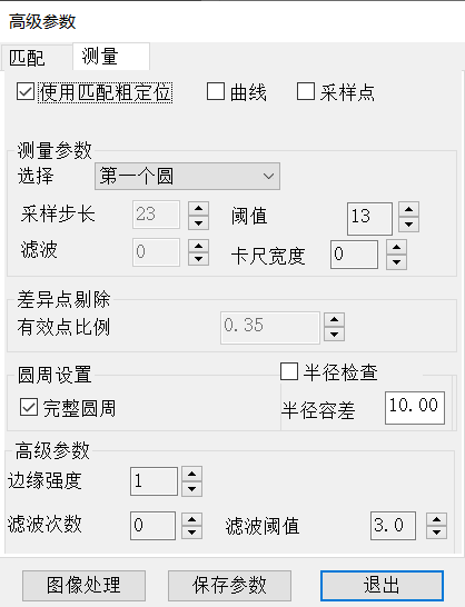 这两个参数是组合使用的,它们起到剔除差异点的作用,提高拟合圆的准确性。