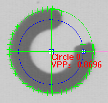 该参数表示参与拟合圆的有效点数量占总测量路径数量的百分比。由于边缘残缺或部分边缘点被剔除等情况,使得参与拟合圆的边缘点数目减少,但不能低于该参数值,否则测量失败。下图中,有效点比例VPP:0.8182