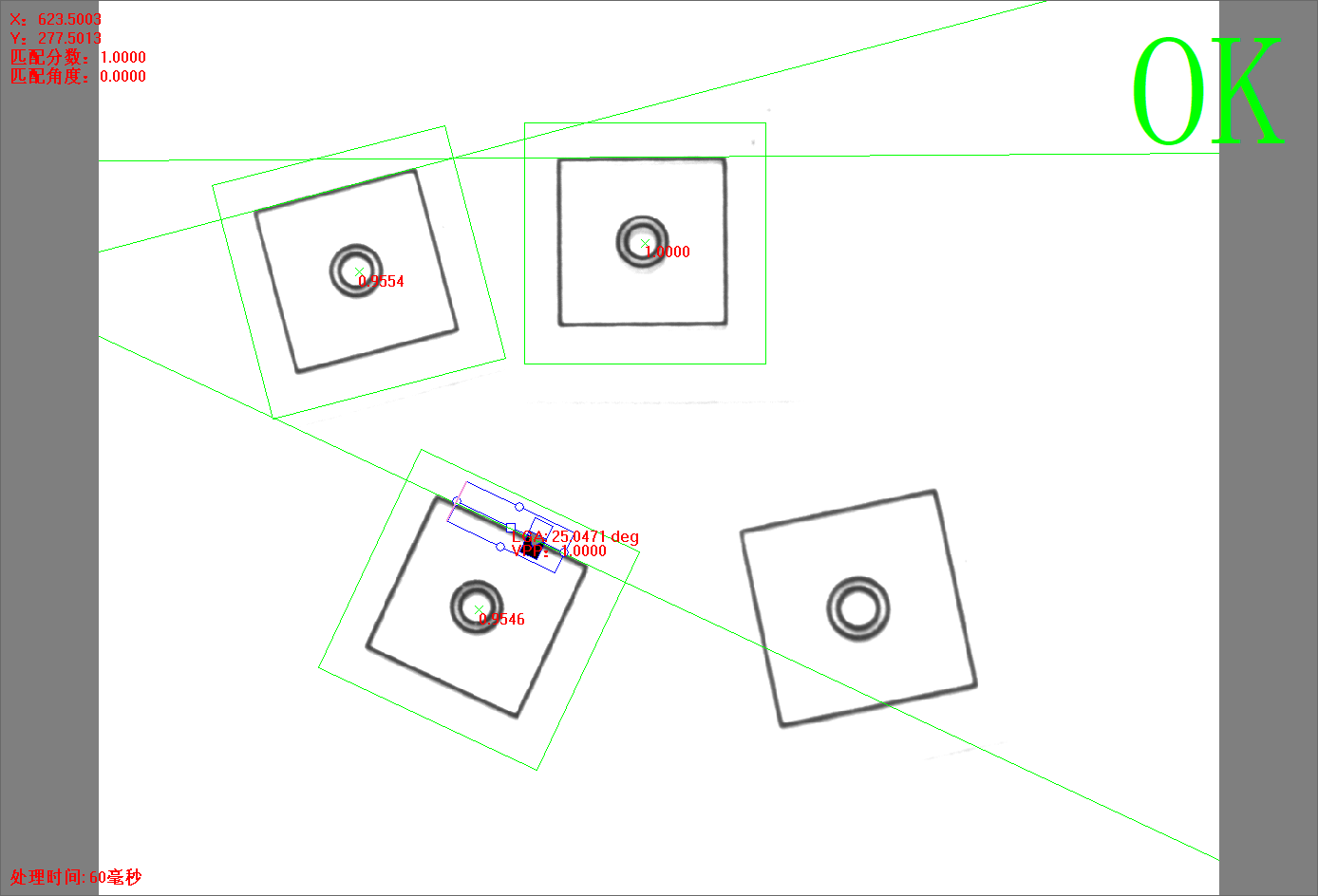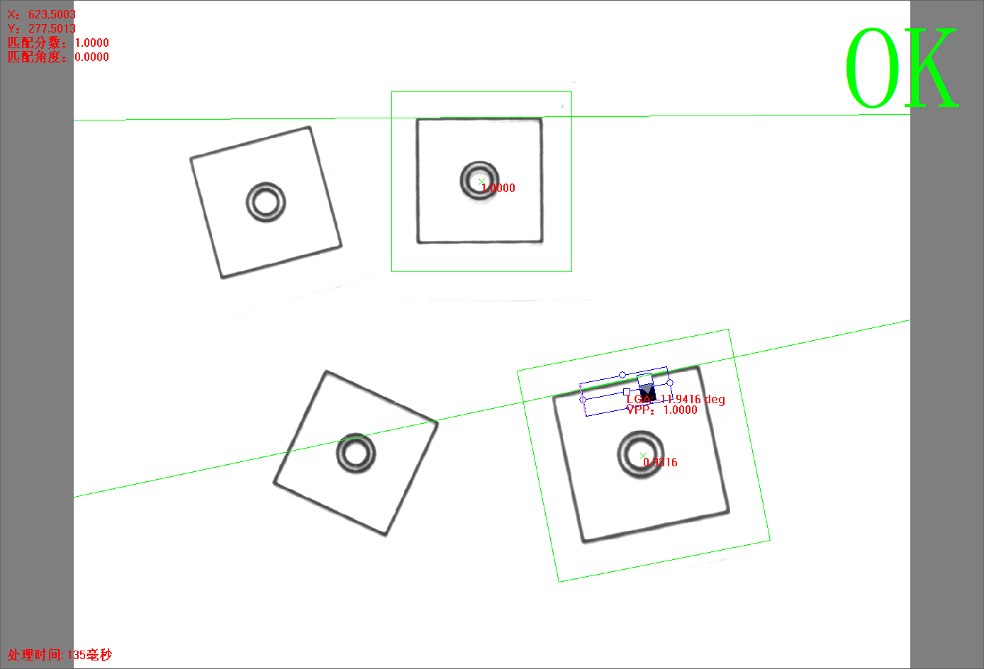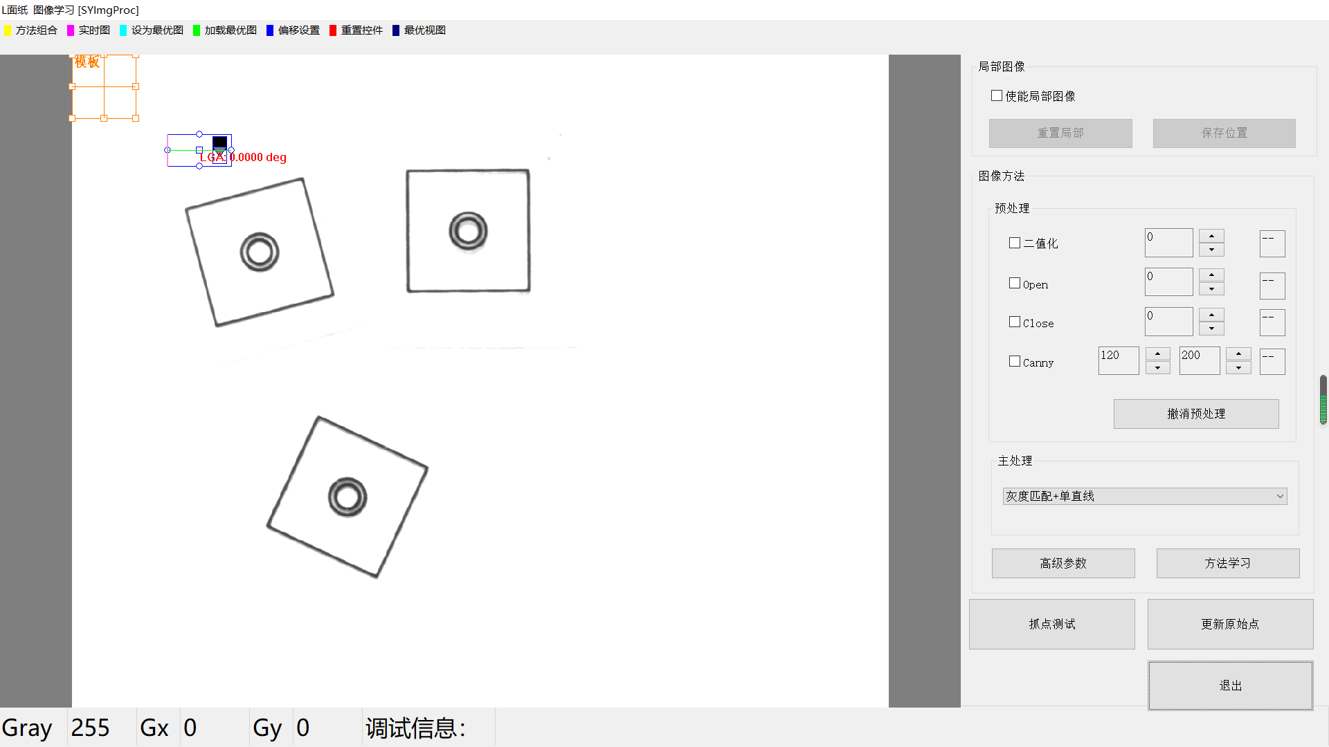 点击【方法学习】后,灰度匹配+单直线方法的所有信息将被保存,并自动进行图像处理,相关的信息将显示。