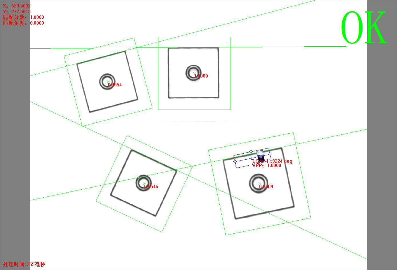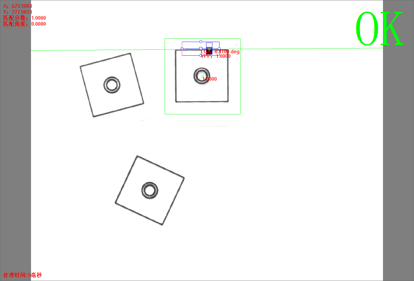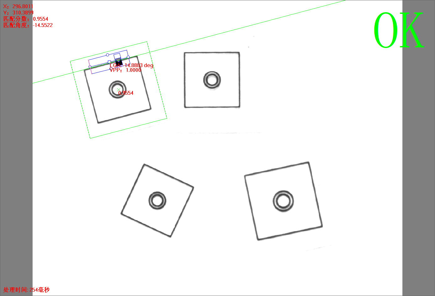 点击【方法学习】后,灰度匹配+单直线方法的所有信息将被保存,并自动进行图像处理,相关的信息将显示。