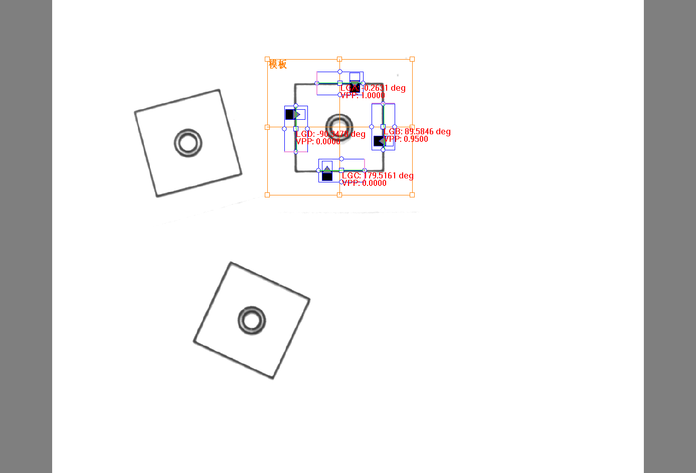 图像中的目标发生角度变化,设置角度容差,即可更好地寻找角度发生旋转的目标。