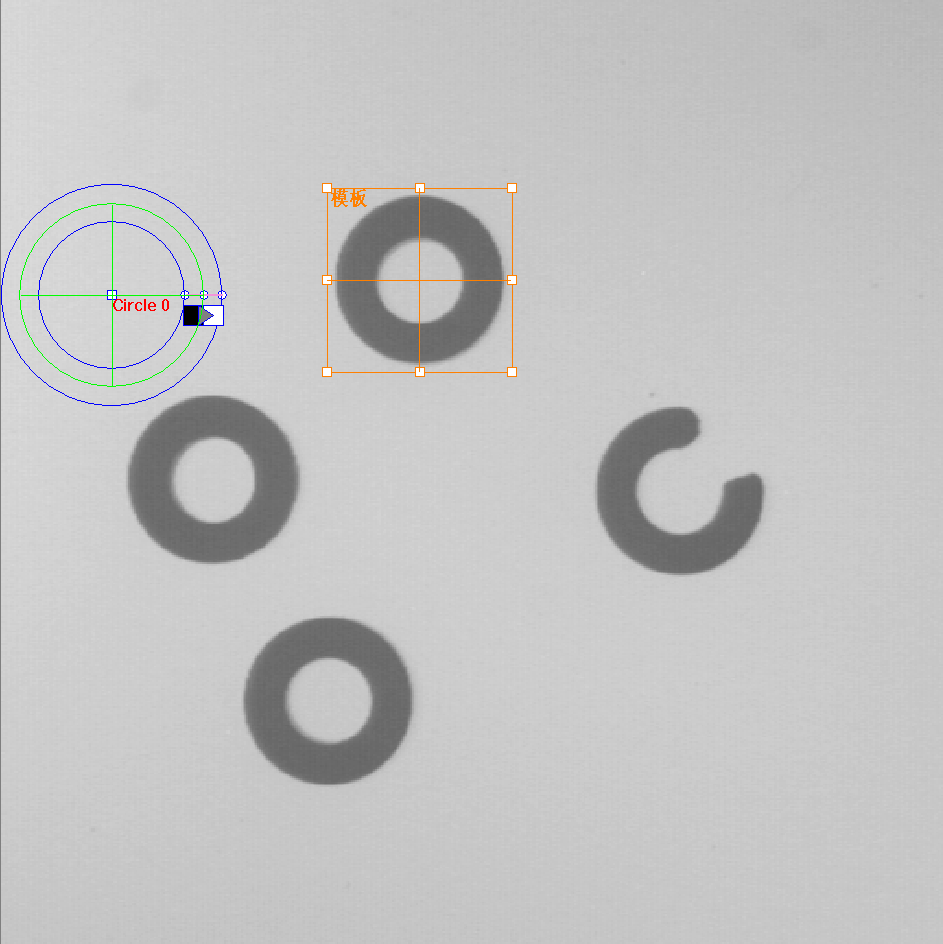 在主处理下拉列表中选择【灰度匹配+圆心】,在图像范围内显示橙色矩形框和圆工具。如果未见,请点击工具栏上方的【重置控件】。