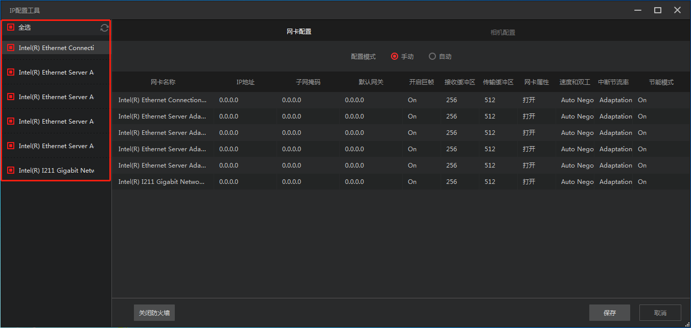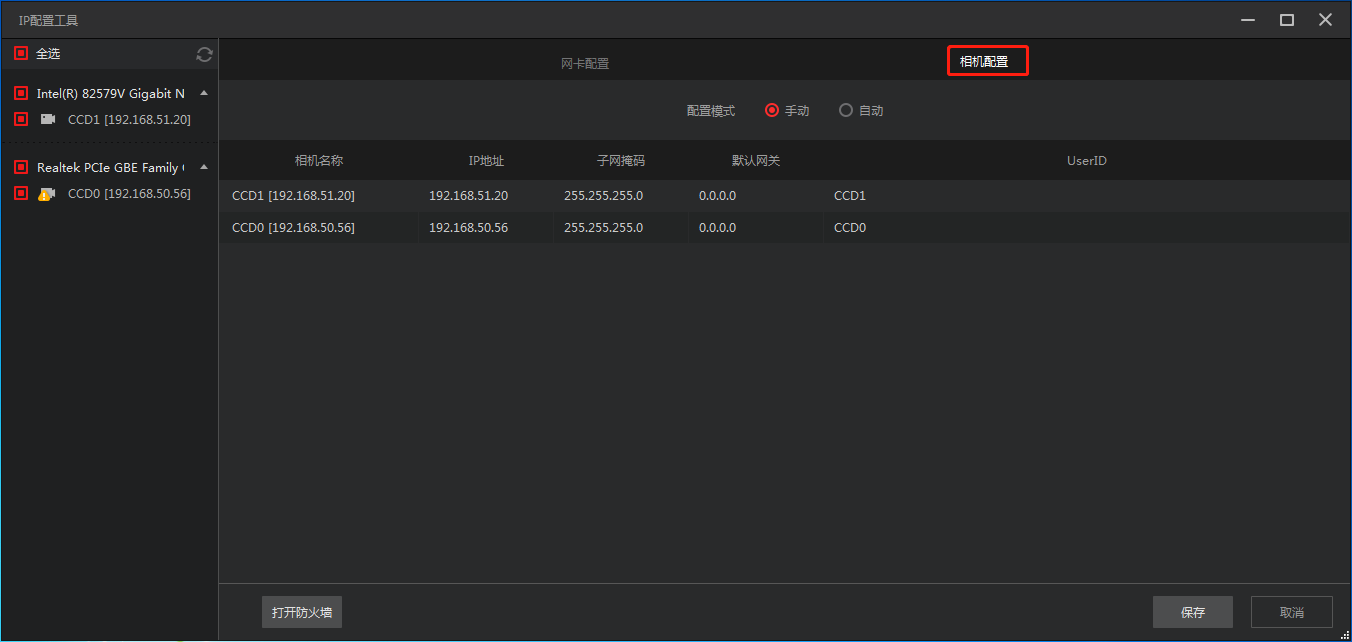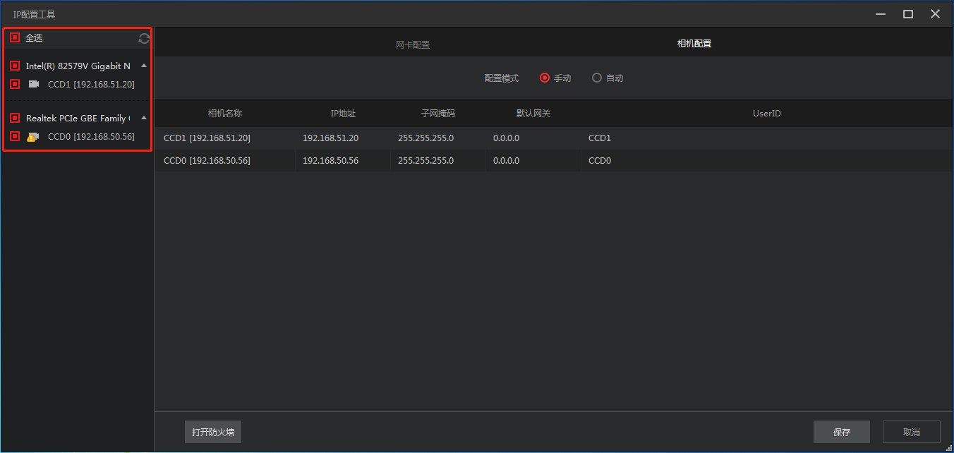 6. 选中好需要配置的相机后在手动配置模式中可手动配置好相机IP;