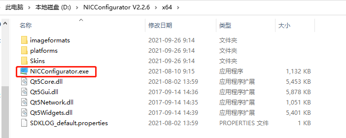 1. 打开IP配置工具文件夹“NICConfigurator V2.2.6”