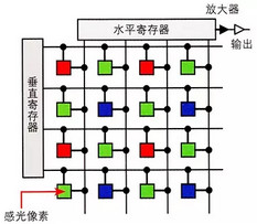 在感光像点接受光照之后,感光元件产生对应的电流,电流大小与光强对应,因此感光元件直接输出的电信号是模拟的。在CCD传感器中,每一个感光元件都不对此作进一步的处理,而是将它直接输出到垂直寄存器,传到水平寄存器中,最后才能形成统一的输出。由于感光元件生成的电信号实在太微弱了加上在此过程中会产生大量电压损耗,无法直接进行模数转换工作,因此这些输出数据必须做统一的放大处理—这项任务是由CCD传感器中的放大器专门负责,经放大器处理之后,每个像点的电信号强度都获得同样幅度的增大;因信号只通过一个放大器进行放大,所以产生的噪点较少。但由于CCD本身无法将模拟信号直接转换为数字信号,因此还需要一个专门的模数转换芯片进行处理,最终以二进制数字图像矩阵的形式输出给专门的DSP处理芯片。