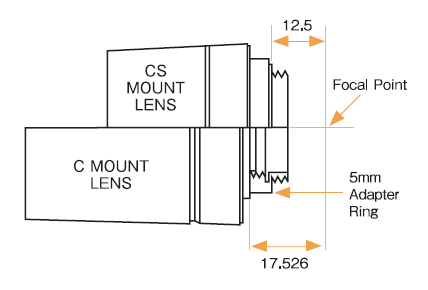 b. CS接口的相机可以搭配C接口的镜头使用,但是要使用5mm转接圈才能正常聚焦;