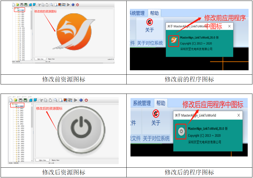 四、修改关于对话框页面图标