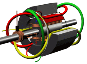 电动机主要包括一个用以产生磁场的电磁铁绕组或分布的定子绕组和一个旋转电枢或转子和其它附件组成。在定子绕组旋转磁场的作用下,其在电枢鼠笼式铝框中有电流通过并受磁场的作用而使其转动。