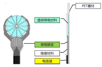 车载电子逐步采用触摸按键面板(图1)替代传统的物理按键面板(图2),而性价比最好的当属电容式感应触摸薄膜。电容式感应触摸薄膜能够穿透绝缘材料(玻璃、塑料等)外壳 8mm以上,可以准确无误地侦测到手指的有效触摸区域。还保证了产品的灵敏度、稳定性、可靠性等,不会因环境条件的改变或长期使用而发生变化,并具有防水和强抗干扰能力,超强防护,超强适应温度范围等优点。电容触摸薄膜结构如图3。