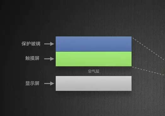 首先,我们先来了解下屏幕的结构,手机屏幕的组成可分为大致3个部分,分别为保护玻璃、触摸屏、显示屏。而这三部分是需要进行贴合的,一般来说是需要两次贴合,在保护玻璃与触摸屏之间进行一次贴合,而另一次的贴合则是在显示屏与触摸屏之间。按贴合的方式可以分为全贴合和框贴两种。