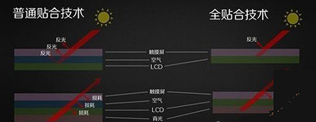 而全贴合技术即是以水胶或光学胶将面板与触摸屏以无缝隙的方式完全黏贴在一起。相较于框贴来说,可以提供更好的显示效果。