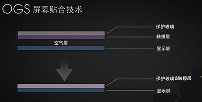 OGS是目前大多数厂商采用的一种全贴合方案,也是目前最主流的全贴合技术。OGS技术就是把触控屏与保护玻璃集成在一起,在保护玻璃内侧镀上ITO导电层,直接在保护玻璃上进行镀膜和光刻,由于节省了一片玻璃和一次贴合,触摸屏能够做的更薄且成本更低。而目前市面采用OGS全贴合技术的国产手机又nubia Z5 mini、中兴GEEK、华为荣耀3C等等。