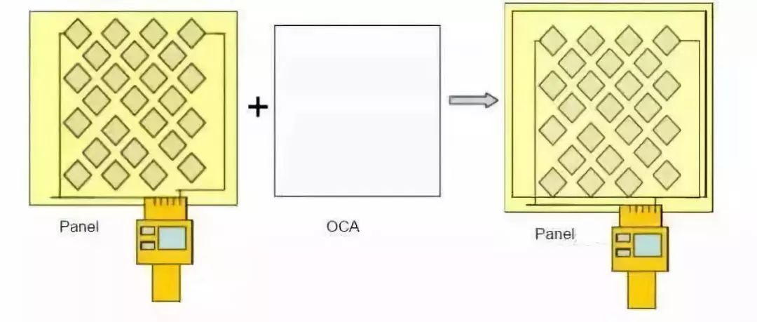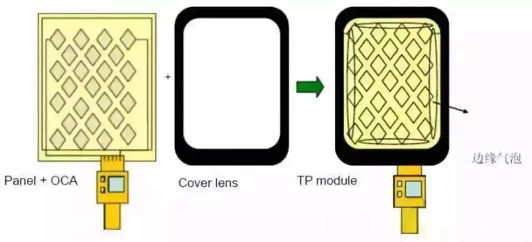 将FPC bonding后的Sensor与cover glass贴合在一起,依据所用胶材的不同,目前有两种贴合方式,一种是OCA贴合,一种是OCR贴合。