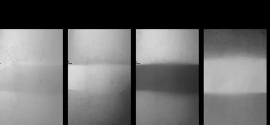 图11显示了在一个略微弯曲的裸金属板零件上,观察到的光的几种不同偏振状态。左起第一张图:可以看到整个零件的光照水平几乎没有变化;第二张图:将相机上看到的偏振改变约45°,图像从顶部到底部都发生变化,但从顶部到中间的变化不大;第三张图:进一步改变在相机中看到的偏振,显示出中间部分有一个非常明显的斜坡;第四张图:将零件反转,图像中的明暗也跟着反转,因为坡度是反向的。在这些图像中,除了相机看到的偏振变化外,没有其他变化。