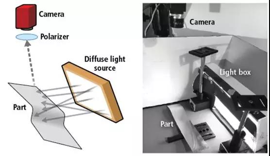 图1:偏振镜的典型应用,使用一个偏振光源和放置在相机前面的另一个偏振镜