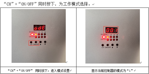 通过控制器的面板,我们可以通过手动对此数字光源控制器进行简易设定。按键。按键一共有 4 个。功能定义分别为: