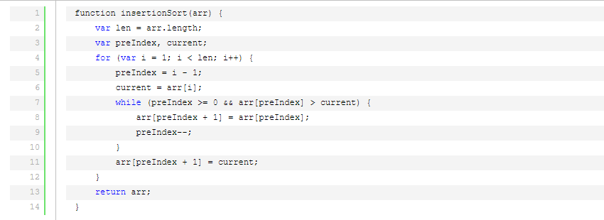 插入排序在实现上,通常采用in-place排序(即只需用到O(1)的额外空间的排序),因而在从后向前扫描过程中,需要反复把已排序元素逐步向后挪位,为最新元素提供插入空间。