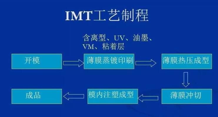 IMT工艺制程主要包括开模、印刷、热压成型、薄膜冲切、模内注塑成型等,详细请看下图。