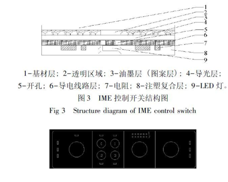 为了适应当前汽车去按键化,更好的人车交互,盲操作,将印刷电子技术和IMD整合,把高性能电子浆料印刷在IMD薄膜上,把电路、触控、天线、LED、IC等集中在一个部件,3D造型,厚度只有2毫米。进一步扩大了设计自由度,节省了装配时间、成本,使产品更小、更轻薄。由此产生了一门新的工艺:3D IME(3D In-Mold Electronics),即三维模内电子工艺。IME是IMD工艺的下一步延展。
