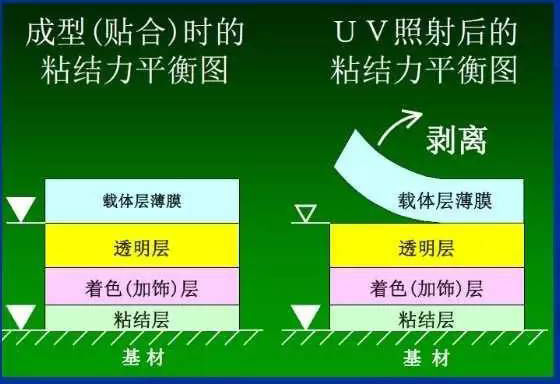 表面是一层硬化的透明薄膜,中间是印刷图案层,背面是塑胶层,油墨夹在中间
