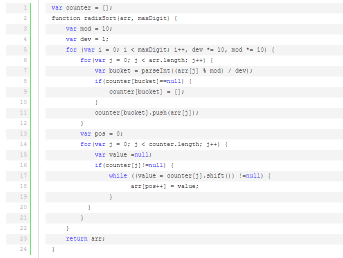 基数排序的空间复杂度为O(n+k),其中k为桶的数量。一般来说n>>k,因此额外空间需要大概n个左右。