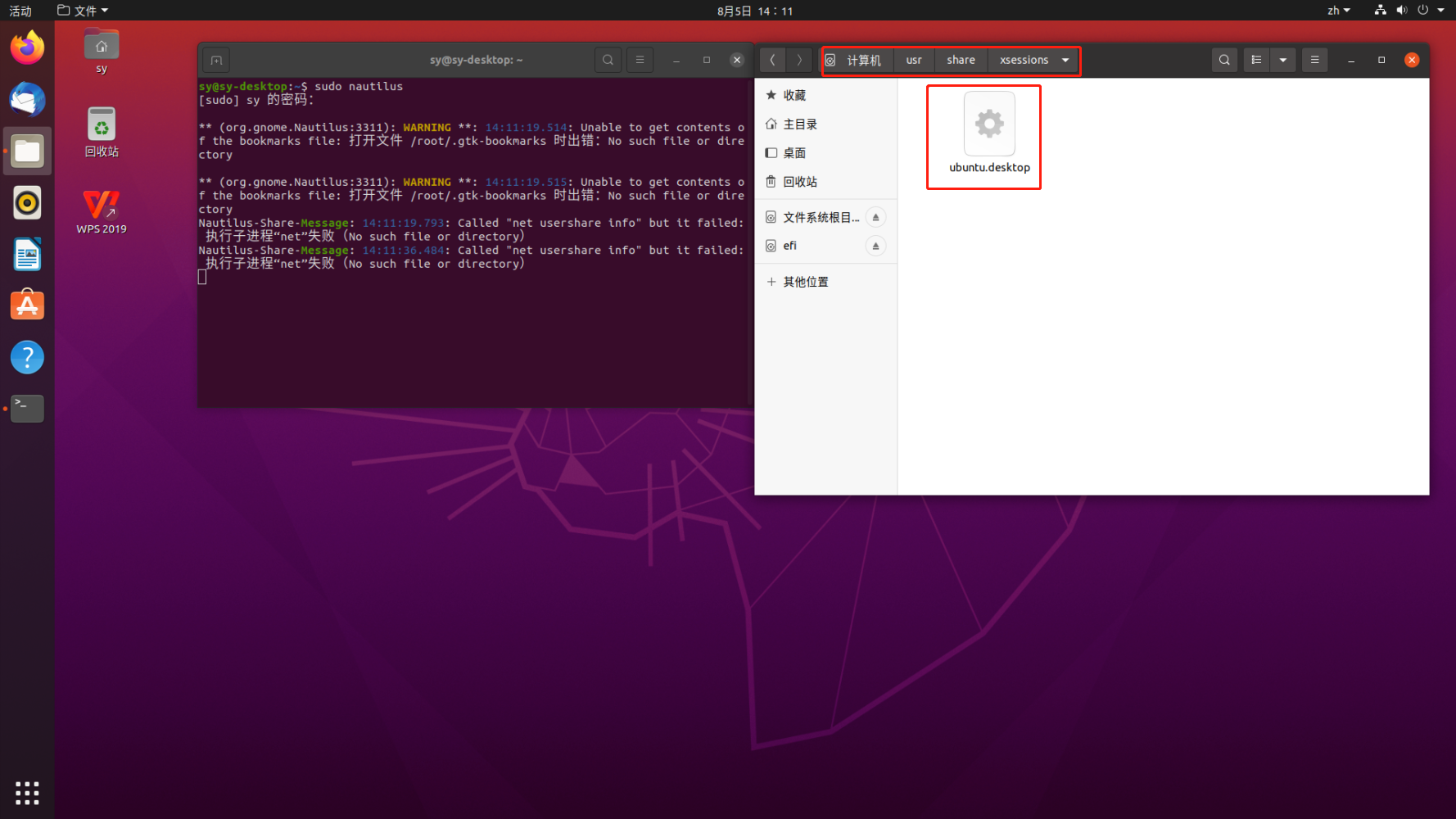 7. 根据“/usr/share/xsessions”路径找到“ubuntu.desktop”文件;