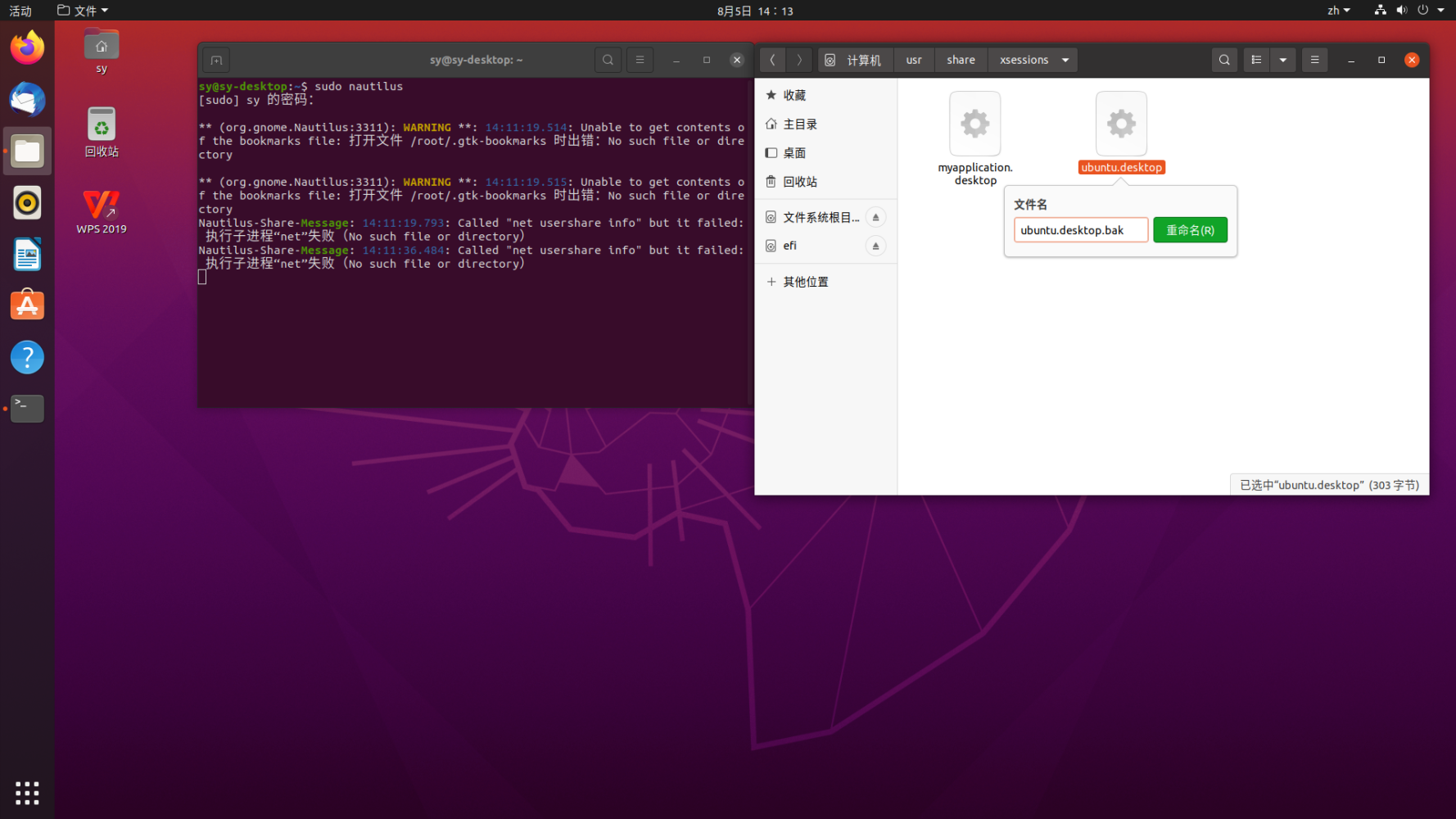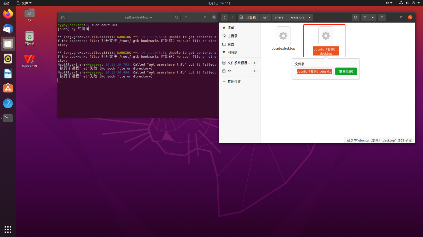 10. 将“ubuntu.desktop”文件重命名为“ubuntu.desktop.bak”