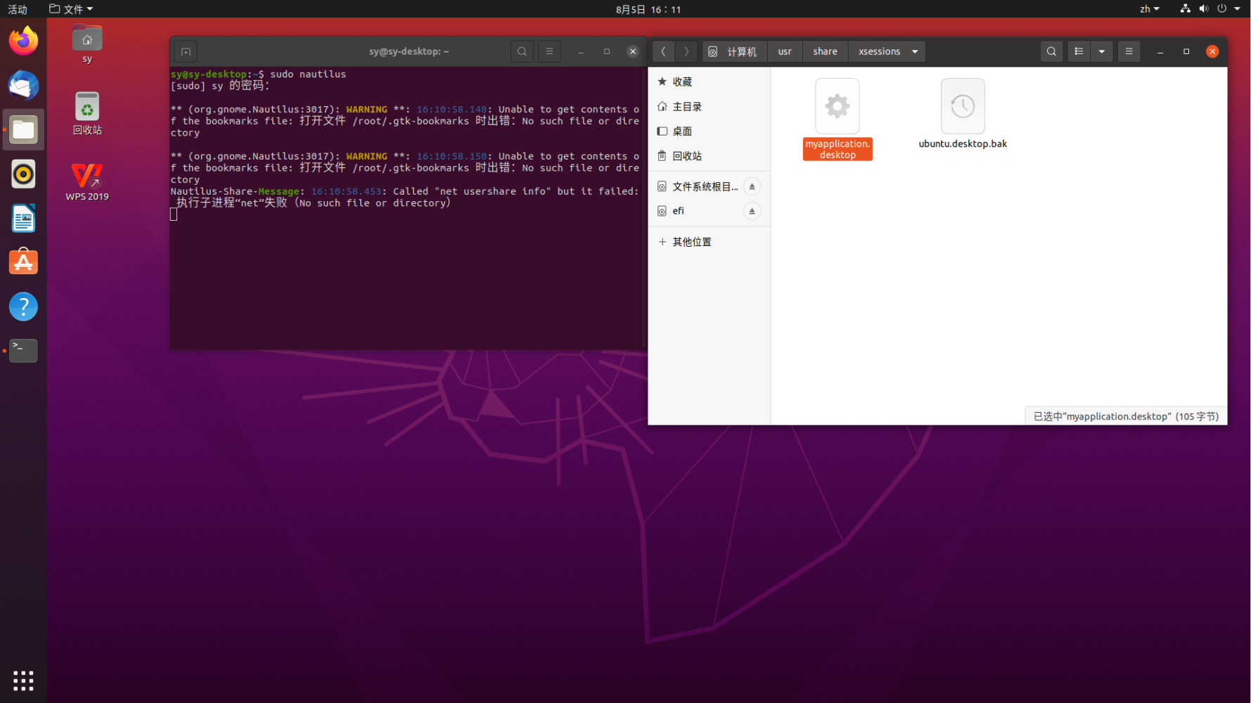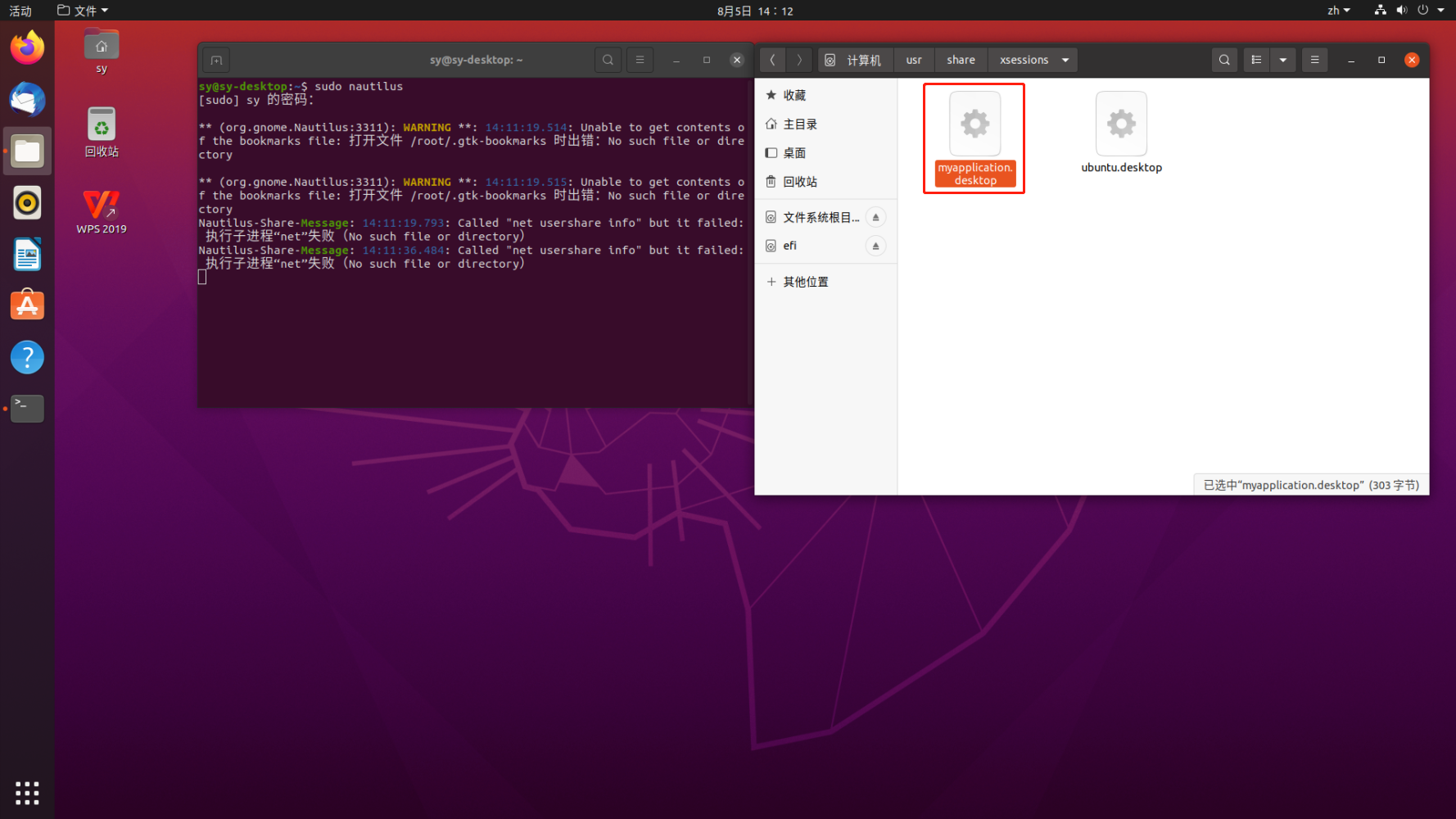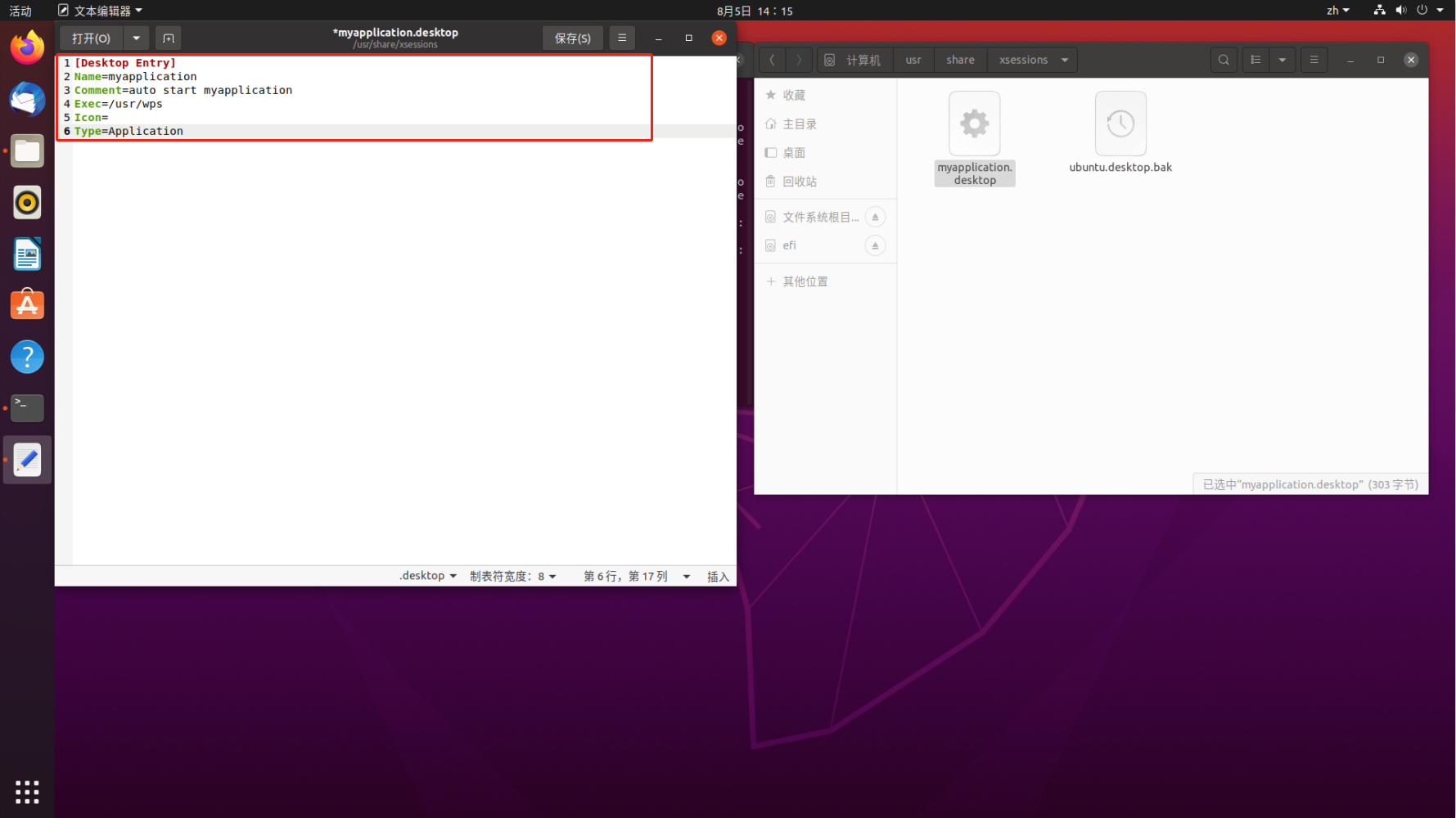 9. 将复制的“ubuntu.desktop”文件重命名为“myapplication.desktop”
