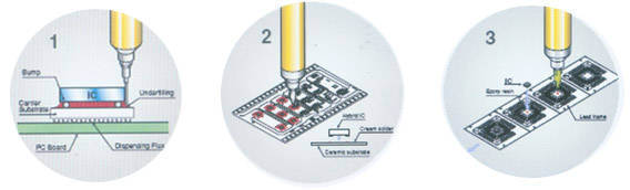 自动点胶机 : 主要应用提供给使用者精准、快速及稳定的点胶质量,让点胶过程能以机械取代人力,给客户降低成本、提高质量的自动化设备。