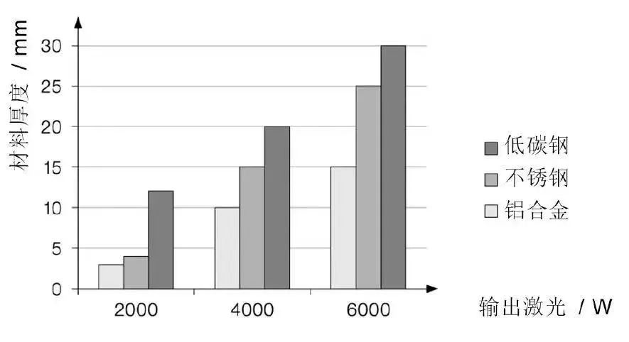 输出功率选择不同材料及不同厚度需要熔化的能量不同,所需的激光器输出功率也不同。生产时需要平衡生产速度及质量,选择设置合适的输出功率及切割速度,保证切割区域能有恰当的能量,材料能被有效熔融并被即使吹走。