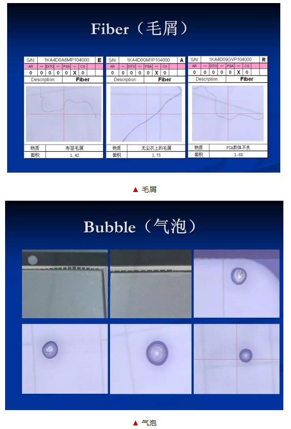 OCA贴合制程不良主要有异物、毛屑、脏污、气泡,对位偏移等。