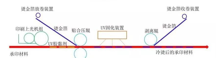 冷烫印是借助印版,利用UV固化胶黏剂将烫印箔转移到承印材料上的一种技术。