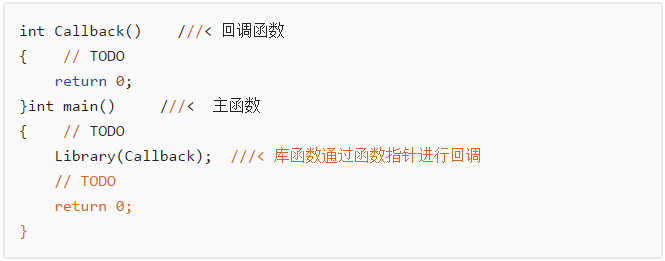 因为可以把调用者与被调用者分开,所以调用者不关心谁是被调用者。它只需知道存在一个具有特定原型和限制条件的被调用函数。