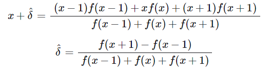看成质点的质量,则可以把质心作为极值的估计。根据质点相对质心位置的质量加权和为零,可求得质心位置。令