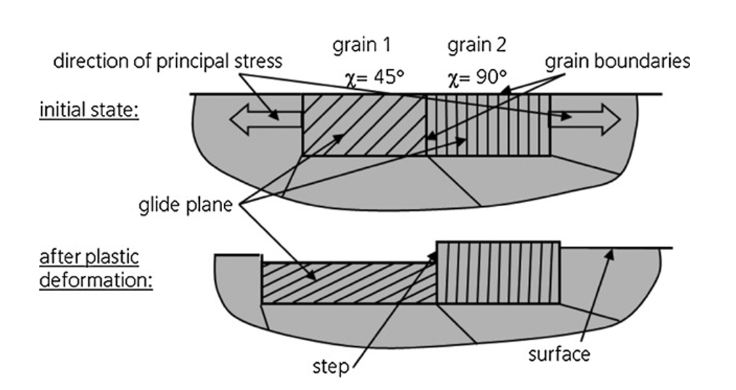 晶格或滑动面的不同方向导致单个晶粒的不同变形(图9)。这会在曲面上产生台阶。