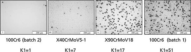 图13显示了不同钢材和批次的激光微抛光表面的光显微照片,以及符合DIN 50602的纯度K1水平。纯度K1的水平取决于夹杂物的类型、大小和数量。