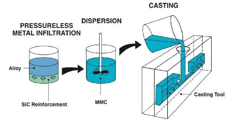 随着对粉末冶金法的技术改进,研究人员开发出了新的粉末冶金方法——机械合金化粉末冶金法,主要分为造粉与压力成形两步。首先将Al基合金与SiC粉末在球磨机的碰撞和搅动作用下进行造粉,形成SiC表面粘有Al合金的复合粉末,然后使用热挤压或热等静压技术,在成形模具中热压致密化成材。