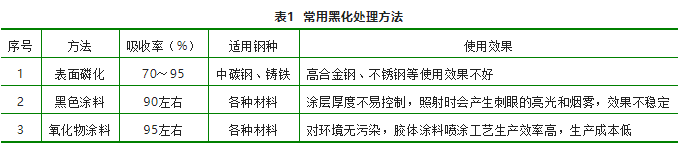 在产品激光淬火前,工件表面粗糙度值很小,在淬火中会严重影响材料表面对激光光能的吸收率。因此,在激光淬火前需要对待处理工件表面进行预处理。表面预处理方法很多,包括磷化法、提高表面粗糙法、氧化物涂料法、黑色涂料法等,其中最常用的是磷化法、黑色涂料法和氧化物涂料法,如表1所示。