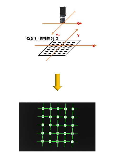 系统采用宫格标定,自定义行列数和间距,控制激光器打出阵列点,然后通过相机进行图像处理获取对应的像素坐标点。利用算法将相机像素坐标与激光器的坐标进行统一。