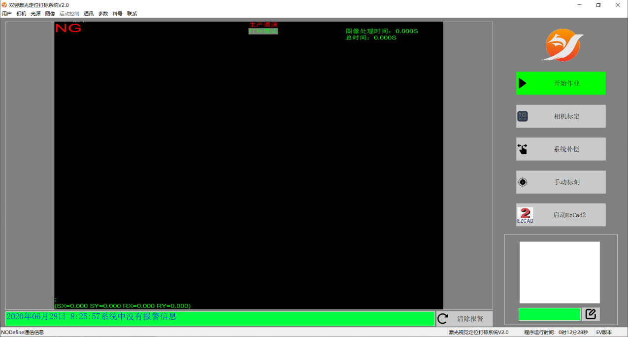 5. 验证标配结果,验证标定准确性的方法:标定完成后,右键选择“激光标刻”,系统将在鼠标指针所指的位置,标刻一次导入的图形。即所谓的“指哪打哪”,说明标定数据正确,激光坐标和相机像素坐标已经统一。