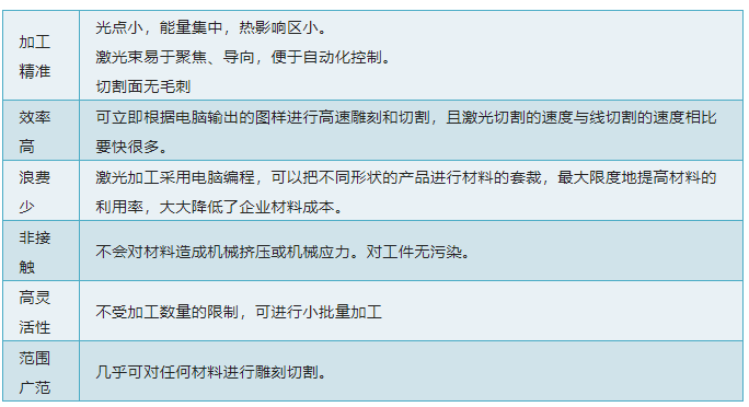 采用连续 CO2 激光加工蒸发低热量、高吸收的材料就可以达到上述效果,例如薄的塑料薄膜以及木材、纸、泡沫等不熔化的材料。