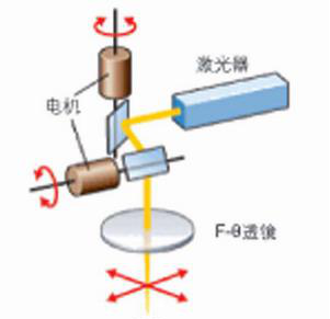从激光器中输出的光束,由安装在高速精密电机上的两个反射镜控制,以实现光束的运动打标。每个反射镜都沿着单一的轴线运动。电机的运动速度非常快,并且惯性非常小,从而能够实现对目标物体的快速打标。经过反射镜引导的光束利用F-θ透镜聚焦,焦点位于被标记的平面上。当该聚焦光束与被标记物体相互作用时,物体就被“打上标记”了。除了被打标的位置,物体的其他表面仍然保持不变。
