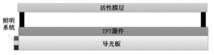 TMOS显示由照明系统、导光板TFT像素驱动电路与活性层4部分组成(图7)。TMOS结构使用RGB LED等作为光源,并使用合适的粘附手段保证照明系统与导光板的匹配性,阻挡漏光,重新定向杂散光线进入系统。而导光板作为系统中的核心光源透过介质,常使用标准的TFT-LCD玻璃基板进行制作。