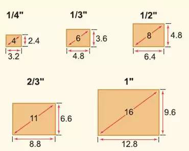 监控相机一般都比较小,甚至小于1/3英寸;工业相机稍微大一些,一般1/2英寸到1英寸不等;传统的135相机底片比当前的一般感光芯片都大,36mm×24mm(1.4英寸×0.9英寸),画面对角线长度为43mm(1.7英寸),即是1.7英寸的,120中幅相机,其感光面尺寸有三种:45×60mm、60×60mm和90×60mm,可见画幅更大。